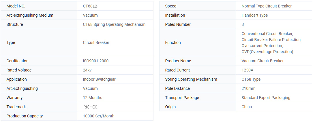 CT68-12 моделі CT68 серіппелі жұмыс механизмімен жабық вакуумдық ажыратқышты қолданады. Бұл үш фазалы AC, 50 HZ электр тарату жабдығы, негізінен, 12 кВ, миналар, мұнай, химия өнеркәсібі, металлургия, металлургия, көмір, көмір шахталарында және муниципалитеттерде, сондай-ақ қалалық тұрғын үйлер мен қоғамдық құрылыстар мен басқа да жерлерде де қолданылады. Ол жоғары вольтты электр жабдықтарын ашық, қысқа тұйықталудан, шамадан тыс және шамадан тыс кернеуден қорғау үшін және электр жабдықтарының қауіпсіз жұмысына сенімді бола алады. Электр жабдықтарының қауіпсіз жұмысына сенімді болуы мүмкін.