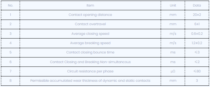 Ажыратқышты реттегеннен кейін механикалық сипаттамалардың параметрлері төменде көрсетілген: