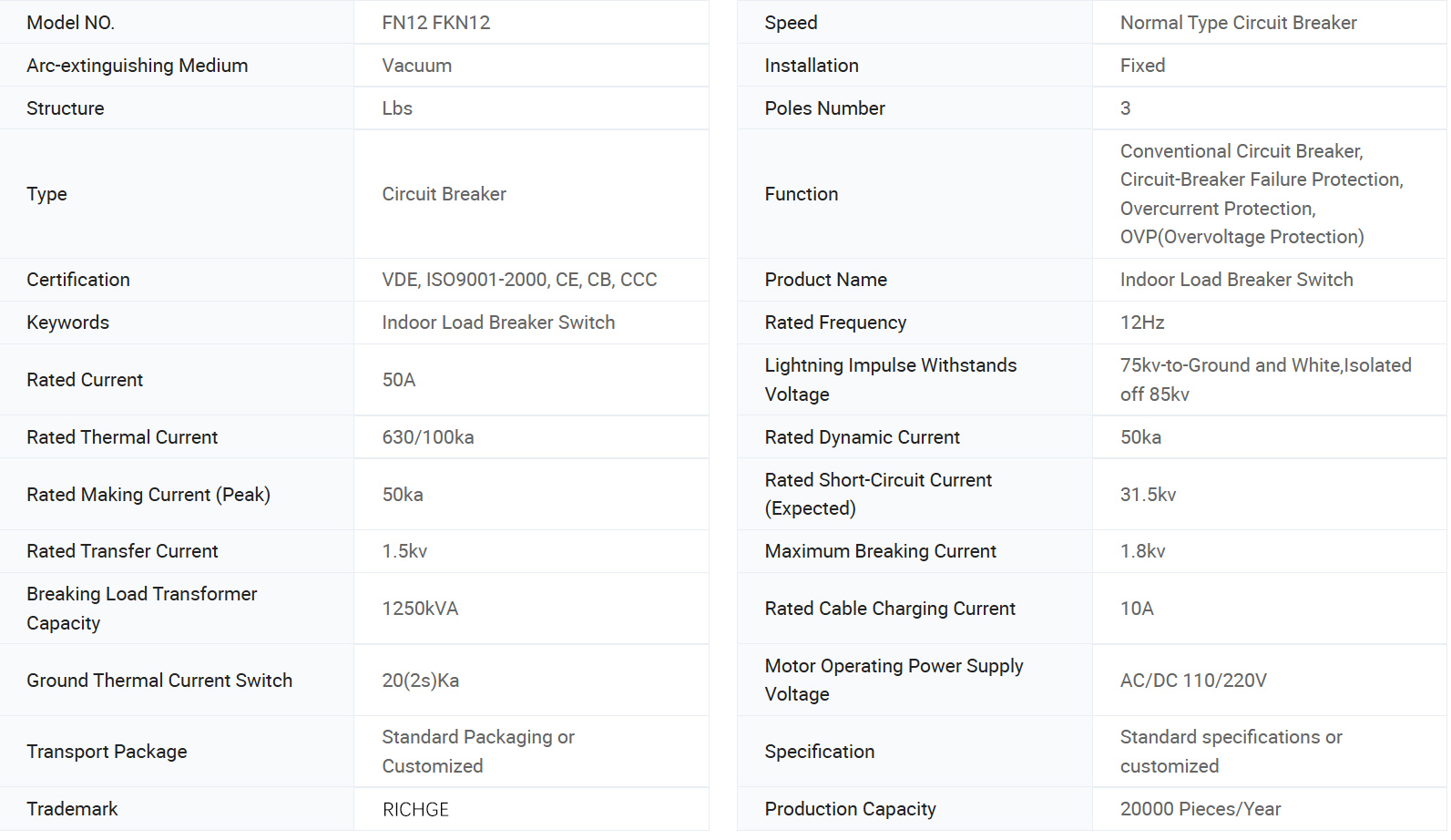 FKN12-12D / 630-20 Ішкі токты жоғары вольтты жүктеме қосқышы - бұл 12 кВ, 12 кВ және номиналды жиілігі бар үш фазалы жоғары вольтты қосқырлар. Ол жүктемені, жабық цикл, жабық цикл, жүктеме емес трансформатор және кабельді зарядтау тогын ауыстыру үшін қолданылады. Жерлендіргіш қосқышпен жабдықталған жүктеме қосқышы қысқа тұйықталуға қарсы тұруы мүмкін, бұл электр таратушы қосалқы станцияда және өндірістік электр жабдықтарында қолданылады, онда қуаттандырылған электр жабдықтарында және бақылау және қорғаудың үш фазалық жабық тізбегі немесе төменгі электрмен жабдықтау жүйесі.