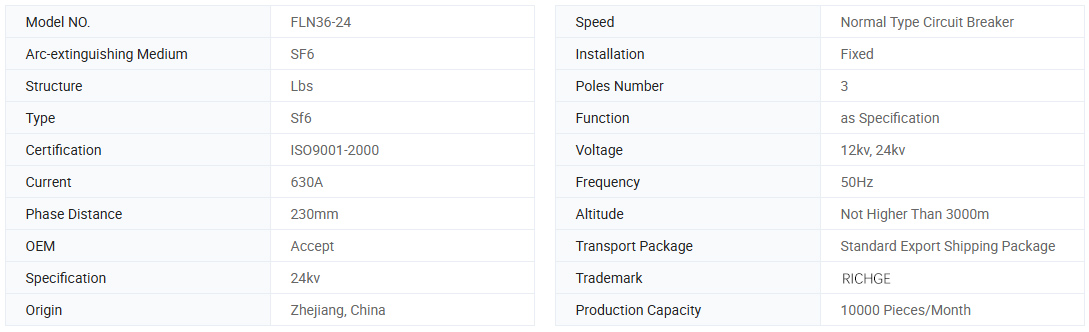 FLN36-12 (24) D / 630-20 Ішкі айнымалы ток Доғозы жоғары кернеу SF6 және FLRN36-12 (24) D / 100-31.5 Ішкі айнымалы ток introl SF6 SF6 SF6 Жүктеу үшін қосқыштың сыйымдылығы Үш фазалы AC 50 / 60HZ RMU және терминалды электр станциясы үшін қолданылады. Коммутаторлар 10 кВ, 24 кВ және 35 кВ электр жүйелерін жүктеуге жарамды. Коммутатор жүктемені, жабық цикл, жабық цикл, жүктелмеген трансформатордың сыйымдылығын және кабельді зарядтау тогын өшіре алады. Сақтандырғышты қосқышы бар коммутатор ток рейтингтік қысқа тұйықталу тогында болған кезде кез келген токты кесіп тастауы мүмкін. Олар RMU, аралас трансформатор және т.б. үшін жарамды.