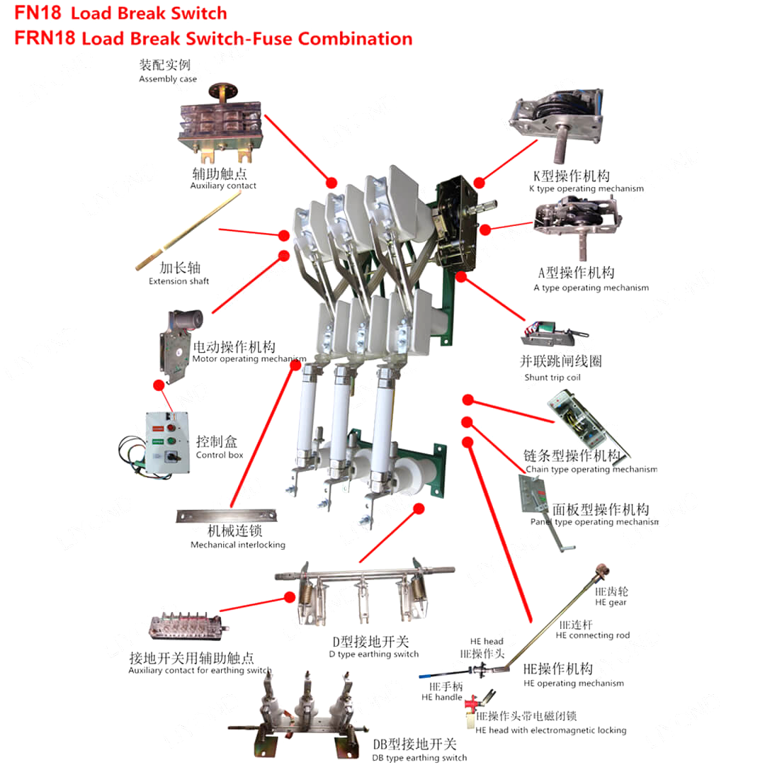 Fn18- 口 - жалпы мақсат, үш полюсті, жүктеме құралы мен консессорлар қосқышы мен жиналғандар кеңейтілген үзіліс технологиясының артықшылықтарын ұсынады және дәлелденген, дәлелденген, ықшам дизайнда. Коммутатор құрастыру қондырғыларына металл, жабық және төсемді қондырғыларға арналған қондырғыға арналған құрылыс блогы ретінде қол жетімді, 12-40,5 кВ.