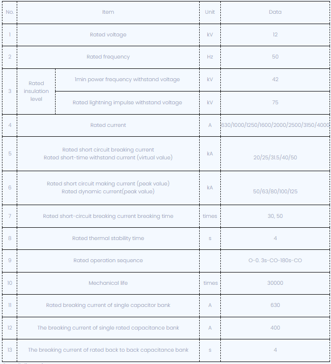 VSG-12 2000A Вакуумдық ажыратқыштың техникалық параметрлері