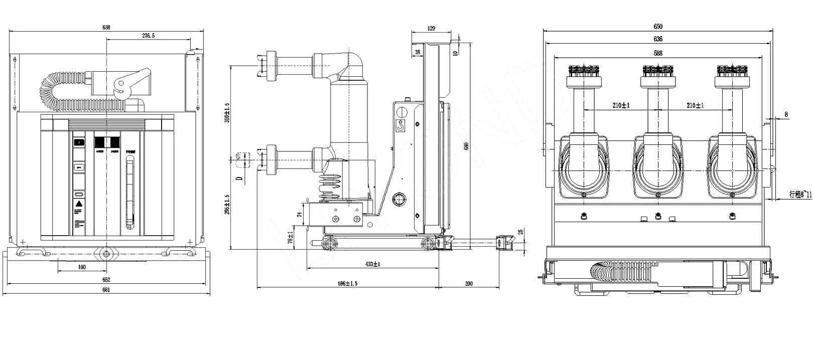VSG-12 / 2000A Өлшемдері Бекітілген полюспен вакуумдық ажыратқыш
